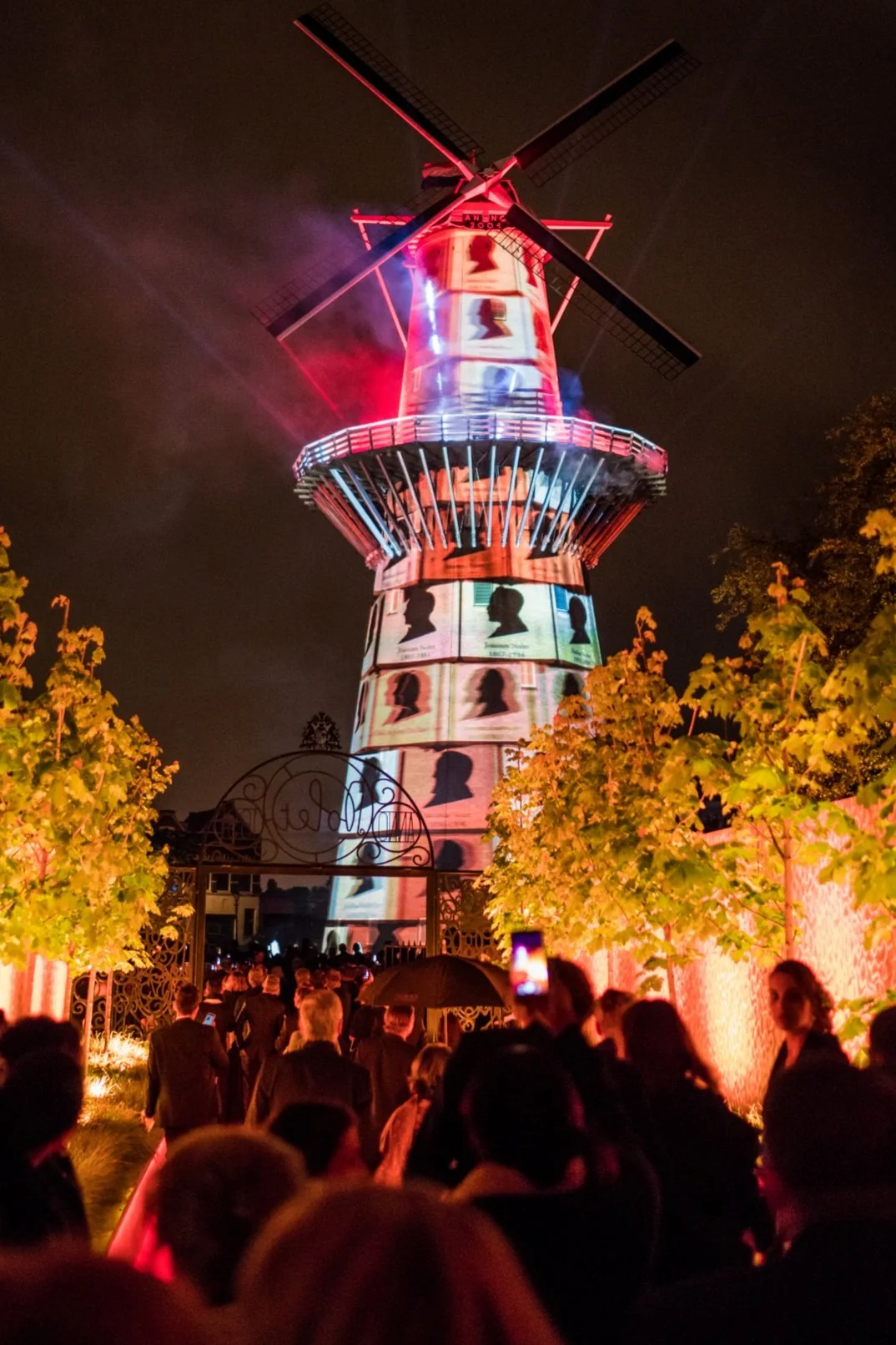 The specifics of the brief also included building a 75m x 20m steel structure from scratch for the gala dinner, organising a full distillery experience, and designing a unique projection on the tallest windmill in the world.